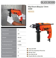 Máy khoan búa động lực 550W-13mm Black & Decker HD555-B1