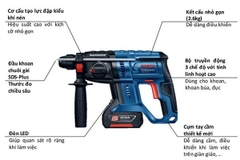 - Hiệu suất cao: nhanh như loại dùng dây. Năng lượng va đập tương tự, công suất khoan tương tự và tốc độ tương tự như GBH 2-20