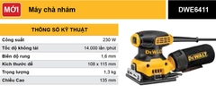 Dewalt DWE6411 là sản phẩm chất lượng cao dùng để chà nhám bề mặt với diện tích tiếp xúc hình vuông, có thể chà nhám những vật dụng hoặc bề mặt với độ chi tiết cao. – Máy hoạt động mạnh mẽ với công suất 230W, có tốc độ không tải là 14000 vòng / phút nên có thể chà nhám...