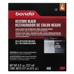Dung Dịch Phục Hồi Nhựa Đen 3M Bondo Restore Black Restauradoor De Color Negro Pn0800 giúp trả lại màu đen bóng bẩy cho lốp xe, đồ nội thất, bộ phận nhựa tới 6 tháng. Với việc sử dụng dễ dàng, Bondo® Restore Black thấm đều vào bề mặt và để lại độ bóng đẹp sâu cho sản phẩm.