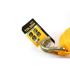 Dây Tăng Đơ Chằng Hàng Tolsen 62261 (38mm x 6m) với độ đàn hồi cao và chất liệu bền bỉ, được sử dụng để chằng, buộc đồ với 2 đầu móc tiện lợi cho các buổi cắm trại, dã ngoại, leo núi hay đạp xe đường dài.